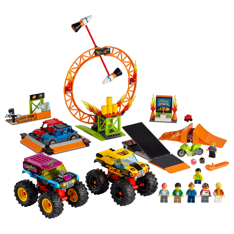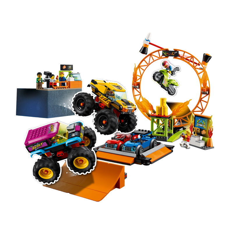 Translation results Translation result «Трюковое шоу Арена» Включает в себя 2 грузовика-монстра, 2 автомобиля, огненное кольцо, рампы, каскадерский мотоцикл и 6 минифигурок, включая 3 персонажей LEGO® City TV. Рекомендуемый возраст: 6+ Количество деталей: 668 Деталей