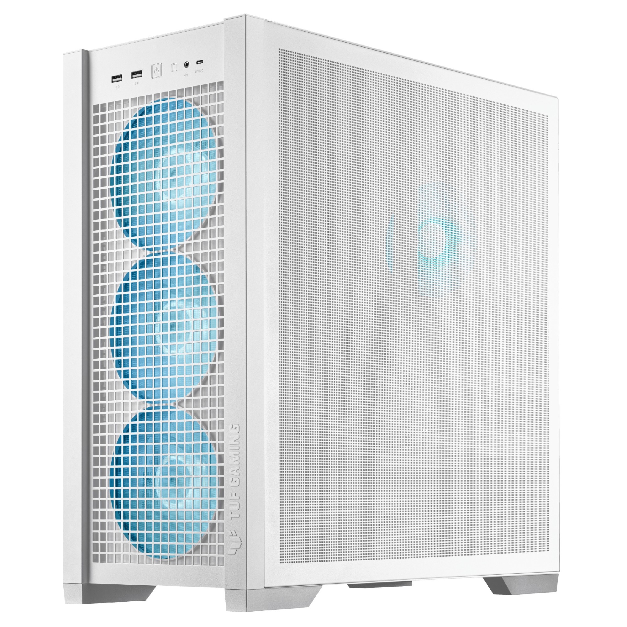 GT302 ASUS TUF GAMING TG TUF GAMING TG ARGB ARGB WHITE CASE, без БП, поддержка MBs для скрытых разъемов, съемная верхняя панель, сменные боковые панели, 360 мм поддержка радиатора, 37 мм прокладка кабелей, спереди: 3x140 мм ARGB вентилятор, сзади: 1x140 мм ARGB вентилятор, 2x3.5" HDD/ 4x2.5" SSD, 2xUSB-C 3.2Gen2x2, 2x USB3.2, 1xAudio, 11.5 кг, EATX