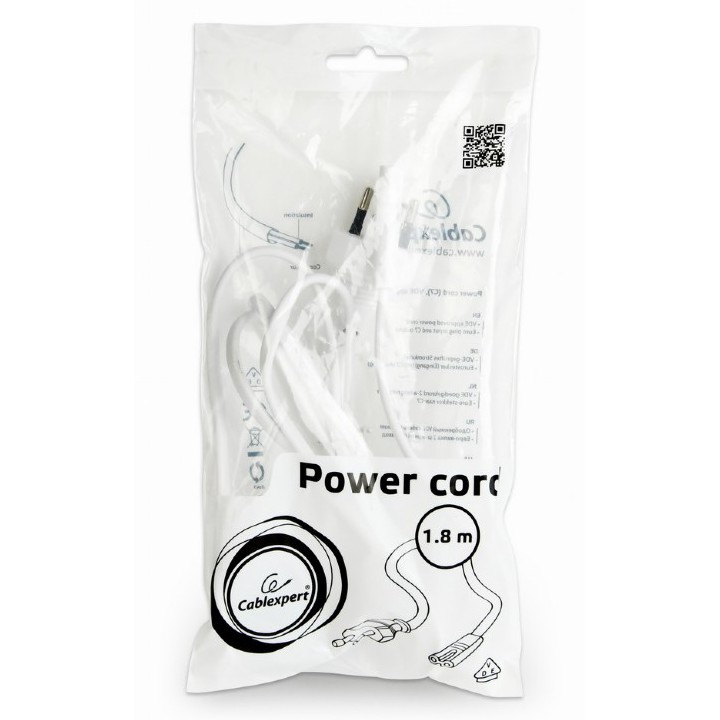 Cablu de alimentare - 1.8m - Cablexpert PC-184/2, 1.8 m, EU fișă de intrare cu 2 pini, Alb