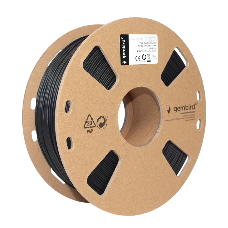 Нить для 3D-принтера Gembird 3DP-PLA-FL-01-BK, PLA, Черный, 1.75 мм, 1кг