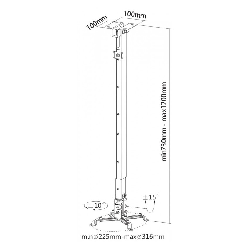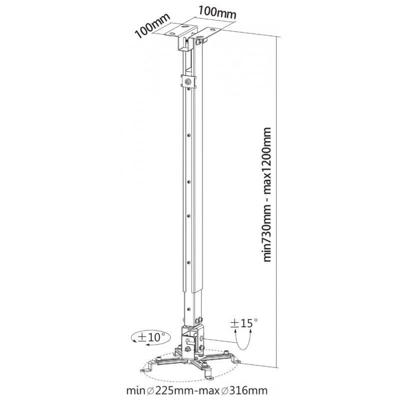 Диапазон наклона: +/- 15°