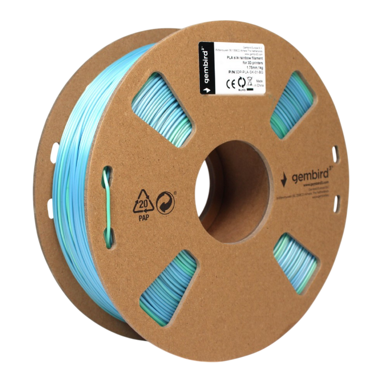 Особенности Нить для 3D-принтера Gembird 3DP-PLA-SK-01-BG, PLA, Синий | Зеленый, 1.75 мм, 1кг