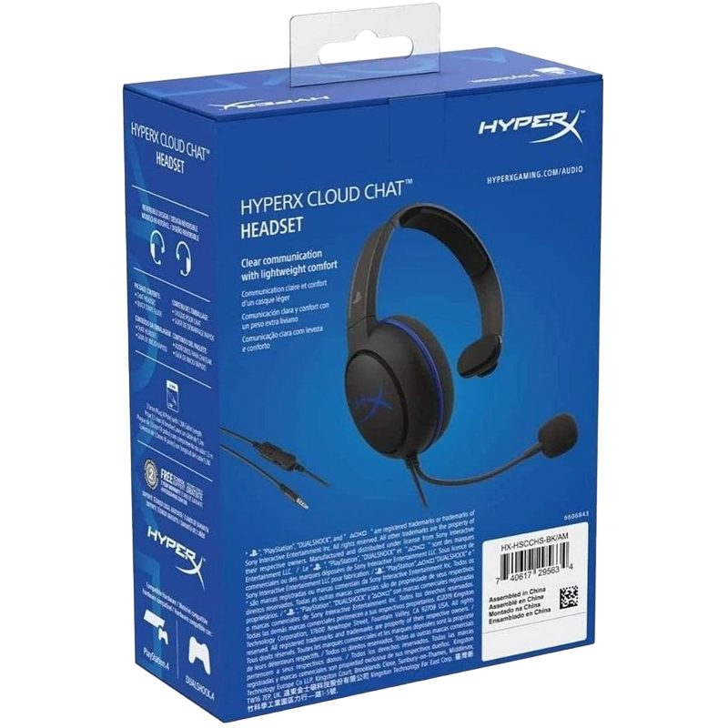 Игровая Гарнитура HyperX Cloud Chat PS4, Проводной аналоговый, Черный/Синий