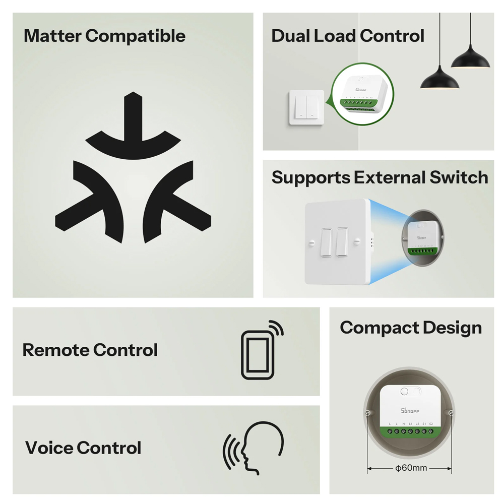Sonoff Matter Over Wi-Fi Smart Switch MINI-2GS Mini Duo 2-Gang (Neutral Required)