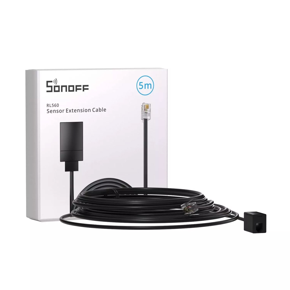 Sonoff Sensor Extension Cable RL560 RJ9 5m - это удлинительный кабель, специально разработанный для увеличения расстояния между датчиками, совместимыми с Sonoff, и основными устройствами автоматизации или управления, такими как интеллектуальные выключатели или контроллеры температуры и влажности.
