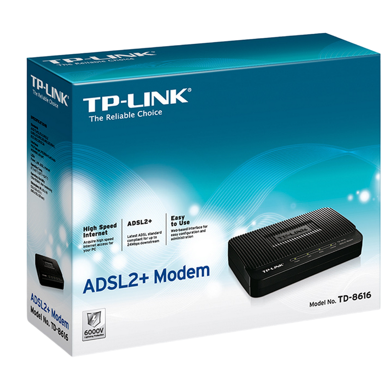 Особенности ADSL Модем TP-LINK TD-8616, ADSL/ADSL2/ADSL2 + до 24 Мбит/с, Чёрный