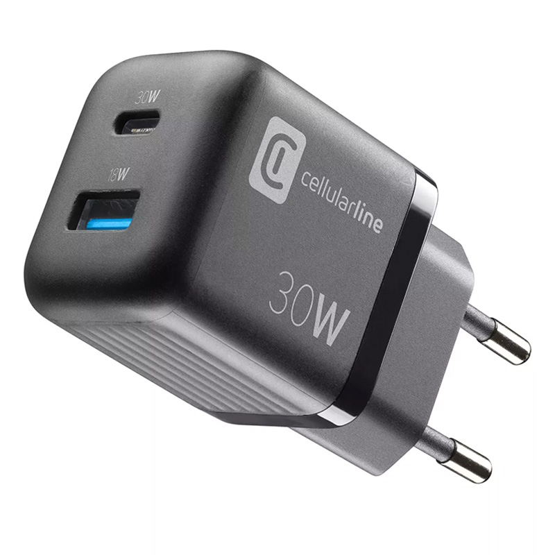 Caracteristici Încărcător Cellularline Wall Charger GAN, 2 Ports, 30W, 30W, Negru