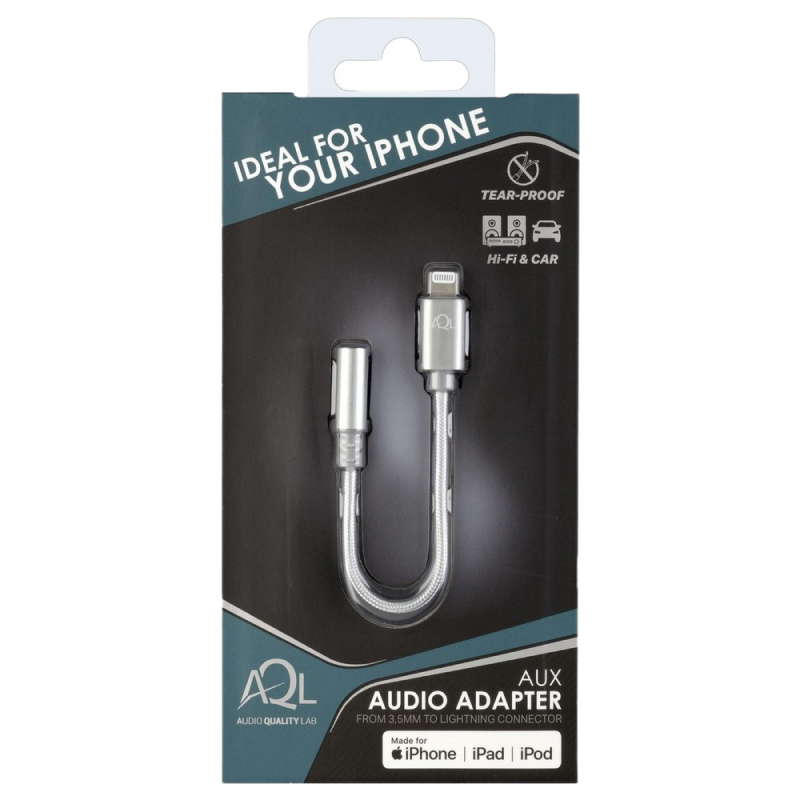 Особенности Аудио адаптер Cellularline Aux Adapter Audio, 3.5mm 3-pin (F)/Lightning, 0,1м, Серый
