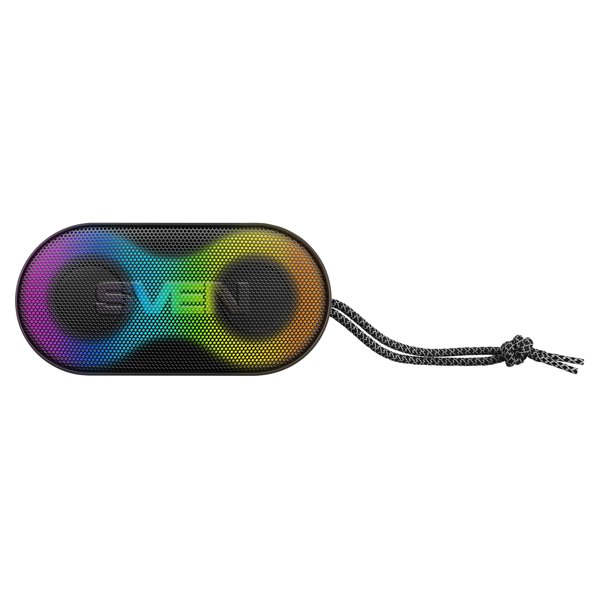 SVEN PS-99, Difuzor portabil Bluetooth rezistent la apă, 10W RMS, Lumină de fundal RGB dinamică comutabilă, Protecție la apă (IPx5), TWS, baterie litiu încorporată -1800 mAh, intrare AUX stereo