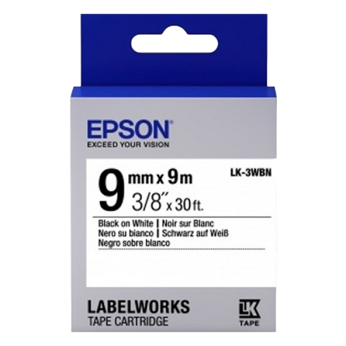 Caracteristici Cartuș de bandă EPSON LK3WBN; 9mm/9m standard, alb/negru, C53S653003