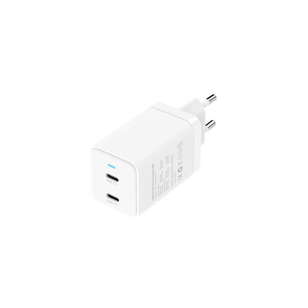 Настенное зарядное устройство GaN Helmet Wall Charger с 2 портами Type-C, 45 Вт и 6 А, белого цвета, - это компактное и эффективное настенное зарядное устройство, предназначенное для быстрой и надежной зарядки ваших электронных устройств.