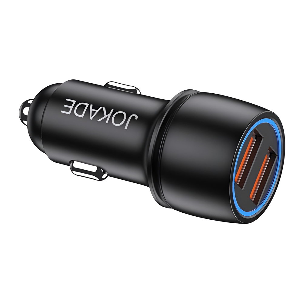 Jokade Car Charger 2*USB-A QC3.0 JH001, Black - это высокопроизводительное автомобильное зарядное устройство, оснащенное двумя портами USB-A и технологией Quick Charge 3.0 (QC3.0), предназначенное для быстрой и эффективной зарядки мобильных устройств.