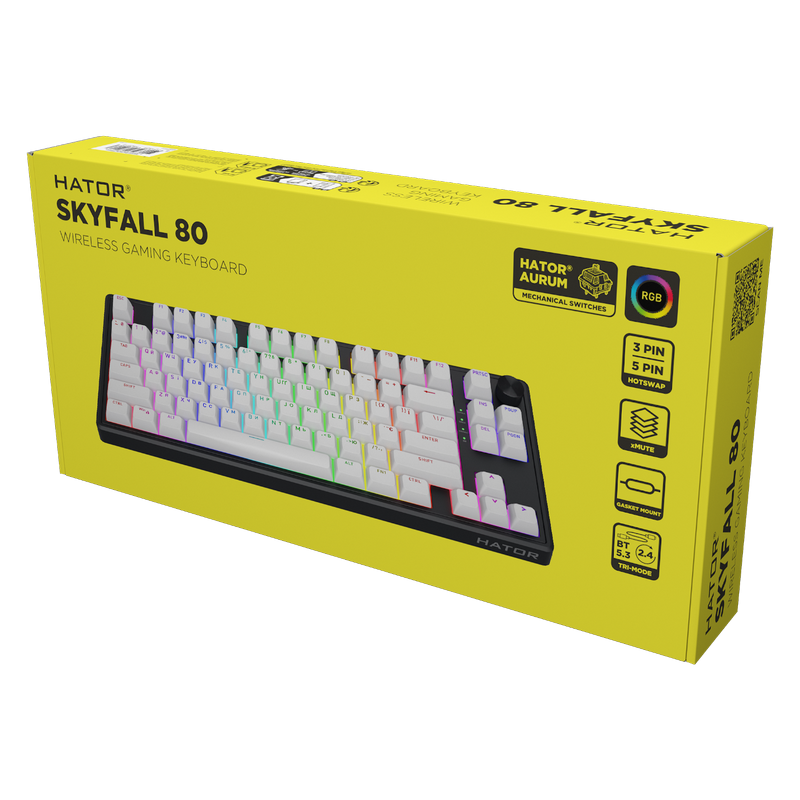 Tastatură HATOR Skyfall 80, Cu fir / Fără fir, Negru | Alb