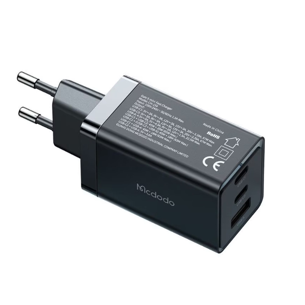 Особенности Mcdodo GaN 5 мини-зарядных устройств 2xType-C 1xUSB 65 Вт, черный