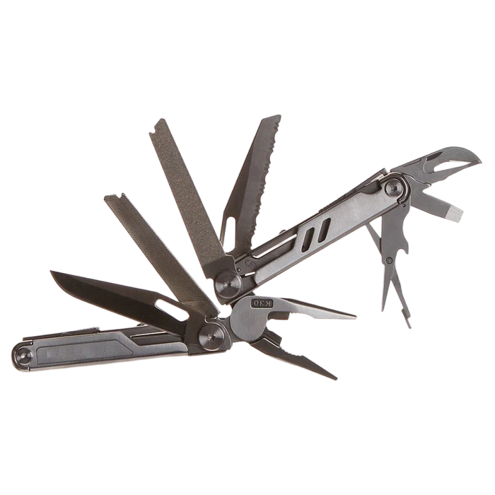 Utilizări: Tăietor de curele, Ferăstrău, Pila, Pilă, Cuțit, Dispozitiv de tăiat sârmă, Tăietor de sârmă tare, Tăietor de sârmă subțire, Clește, Clește cu ace, Riglă, șurubelniță, Şurubelniță Phillips, Foarfece, Şurubelniță cu cap plat (mare), Şurubelniță pentru ochelari, Cutie deschizător, Deschizător de sticle