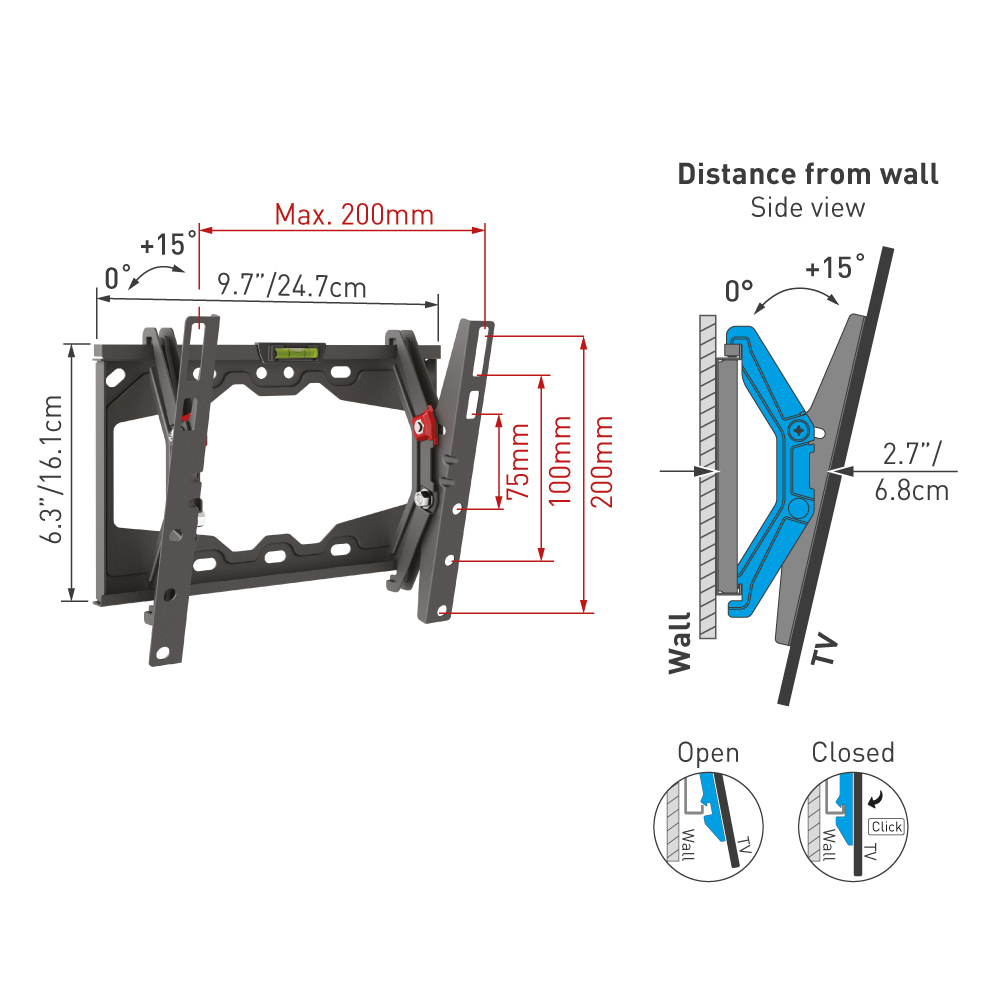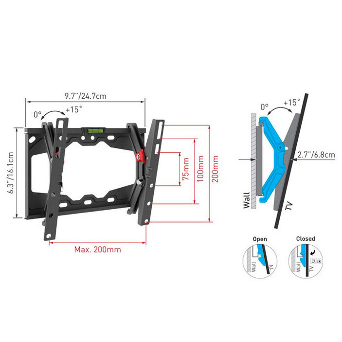 Caracteristici Suport înclinat pe perete BARKAN E210+, Negru