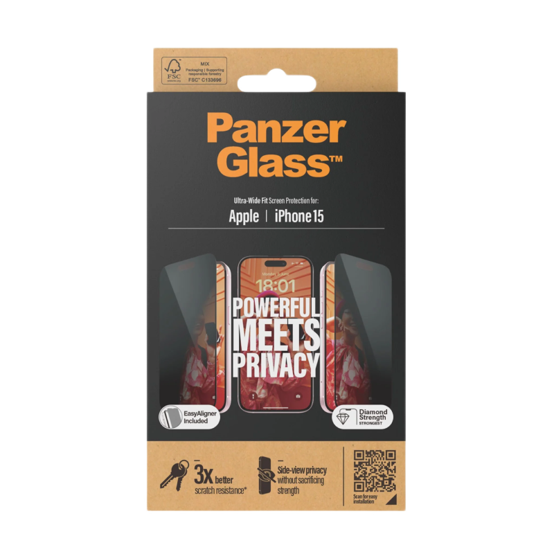 Sticlă de protecție PanzerGlass iPhone 15 UWF Privacy wA, Transparent