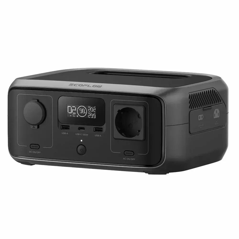 Stație de alimentare portabilă EcoFlow RIVER 3 UPS, Capacitate: 245Wh, Ieșire AC: 300W total (X-Boost 600W), UPS, Număr de prize 5 (1 priză AC, 2 USB-A, USB-C 100W, Ieșire alimentare auto: 100W Max), UPS <10ms, WiFi, Bluetooth, Aplicație mobilă, Greutate netă: 3.55kg, Dimensiuni: 255x212x113mm, Încărcare 0-100% în 1 oră