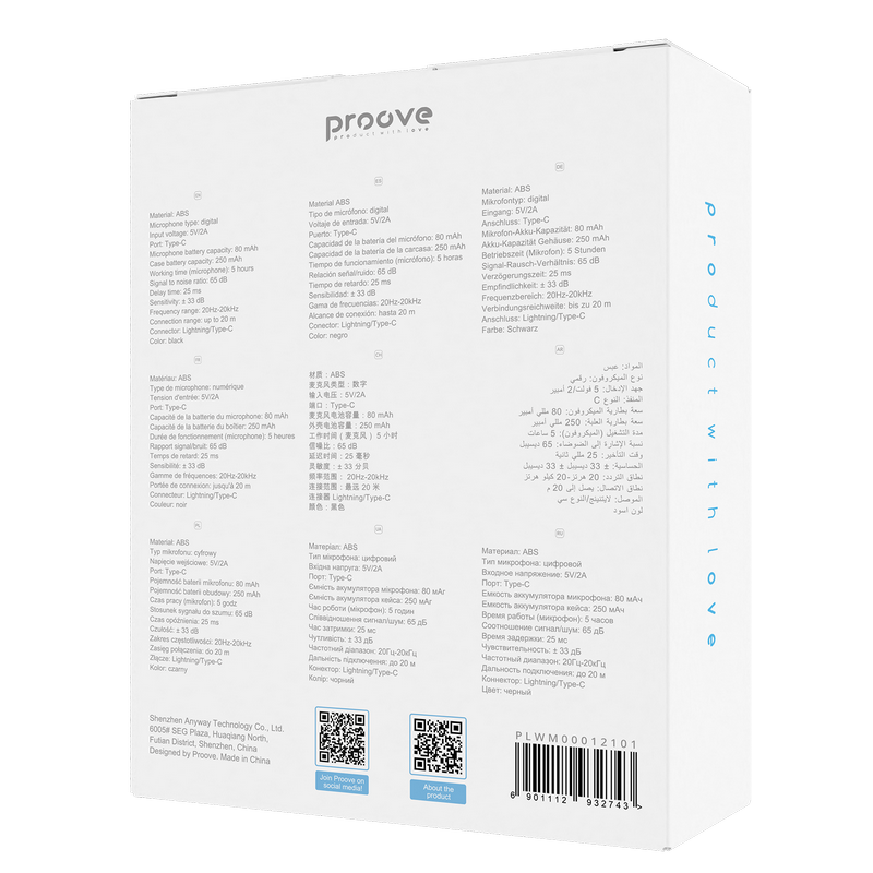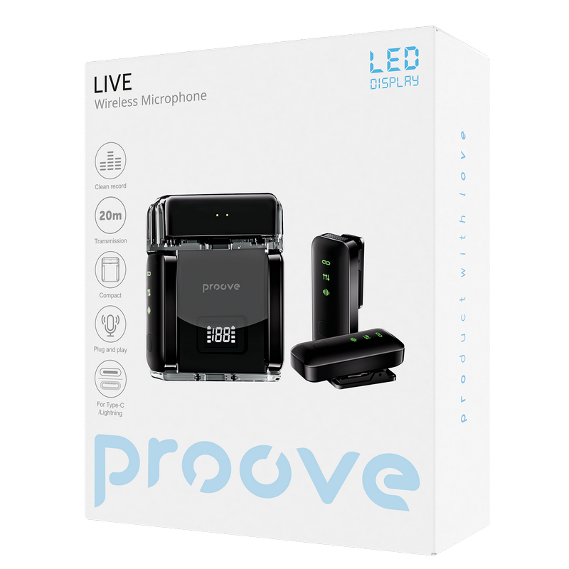 Особенности Портативный записывающий микрофон Proove Live, Беспроводной, Черный