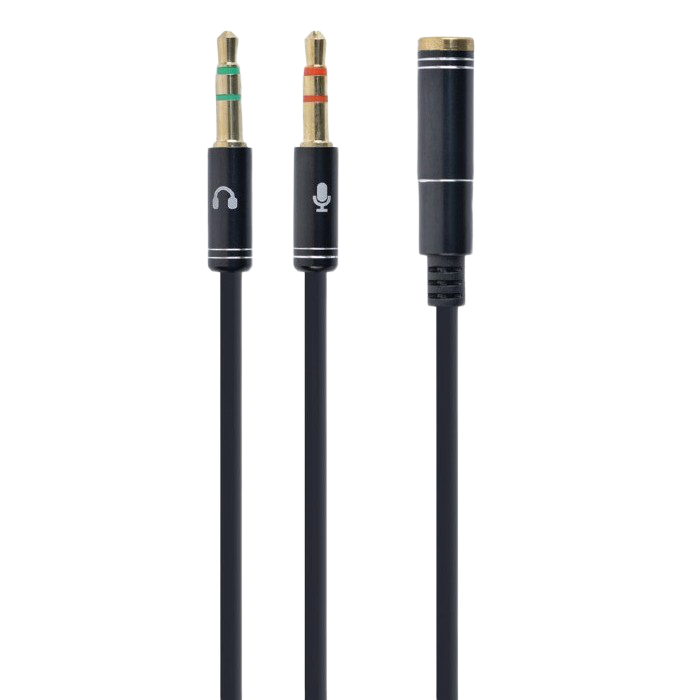 Особенности Аудио адаптер Cablexpert CCA-418M, 3.5mm 4-pin (F) - 2x3.5mm 3-pin (M), 0,2м, Чёрный