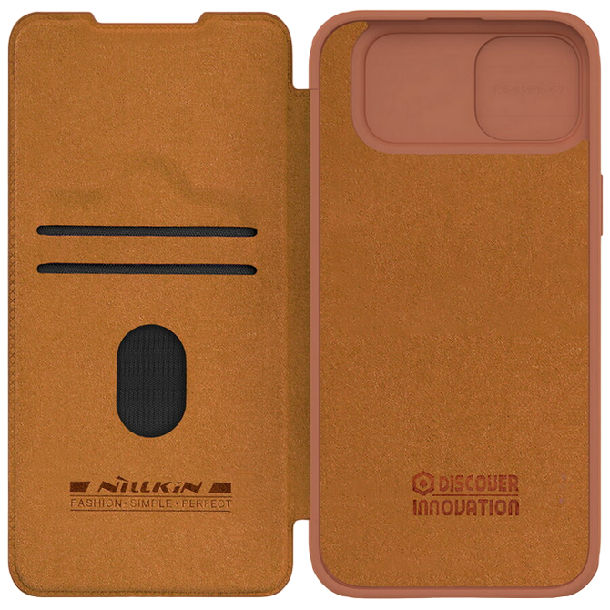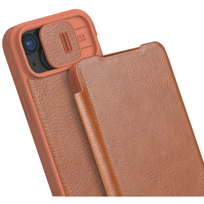 Особенности Чехол книжка Nillkin iPhone 15 Plus - Qin Pro, Коричневый