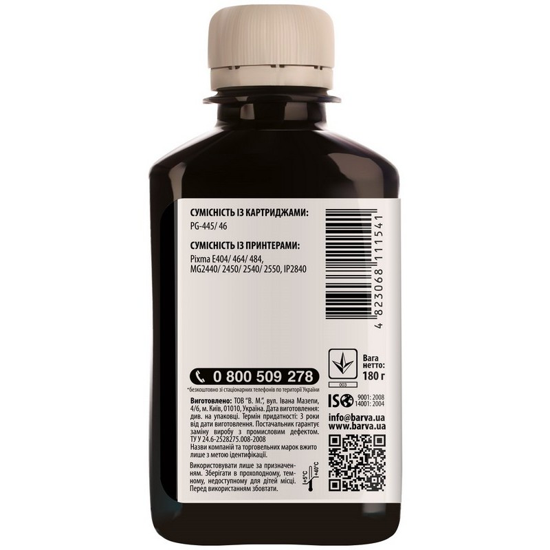 Особенности Картридж чернильный Barva G490 (Canon G-Series), 180мл, Черный