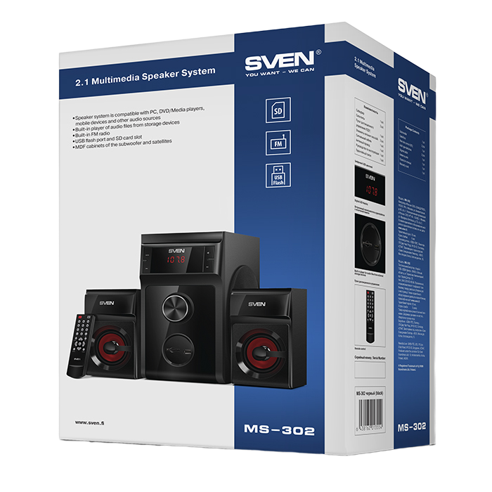 Компьютерные колонки 2.1 SVEN MS-302, Чёрный