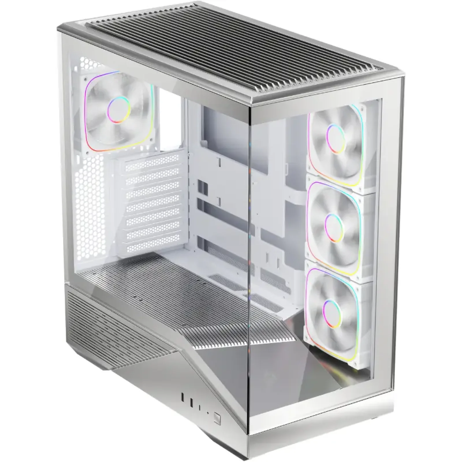 1STPLAYER GM7 Silver — это премиальный корпус формата Mid-Tower в эксклюзивном серебристом цвете. Модель создана для тех, кто ищет альтернативу классическим черным решениям и ценит стиль «хай-тек». Передняя панель с уникальной текстурой в сочетании с боковым окном из закаленного стекла делает этот корпус центральным элементом любого интерьера. В комплекте предустановлены 3 тихих вентилятора 120 мм, обеспечивающих отличную циркуляцию воздуха.