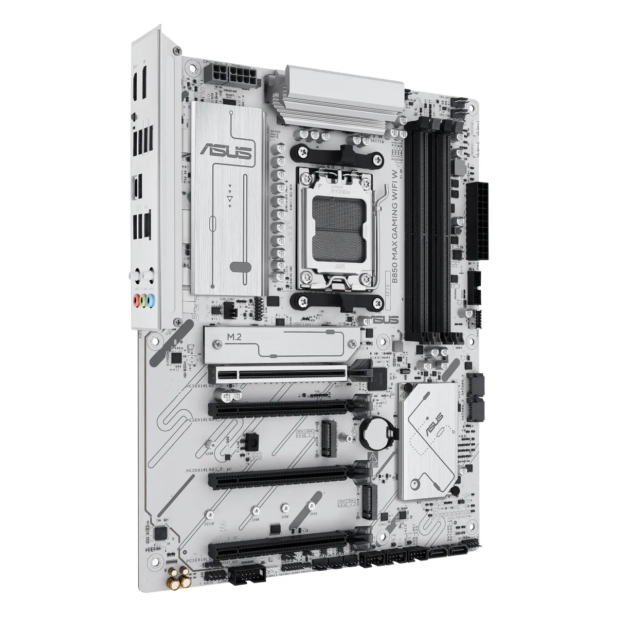 Материнская плата ASUS B850 MAX GAMING WIFI W — это современное решение на базе сокета AM5, ориентированное на белые сборки и работу с процессорами AMD Ryzen 9000, 8000 и 7000 серий.