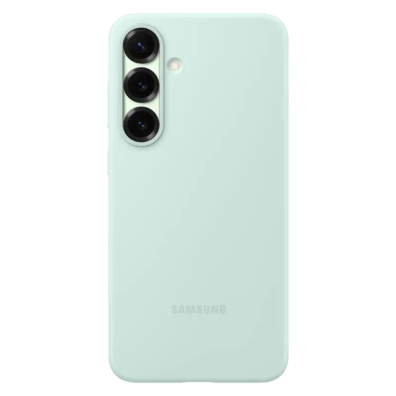 Оригинальный силиконовый чехол Samsung для Galaxy S25+, мятный Этот оригинальный чехол обеспечивает надежную защиту вашего Galaxy S25+ от царапин, ударов и пыли. Он выполнен из высококачественного силикона и добавляет устройству элегантный вид. Чехол плотно прилегает к устройству, сохраняя доступ ко всем портам и кнопкам.