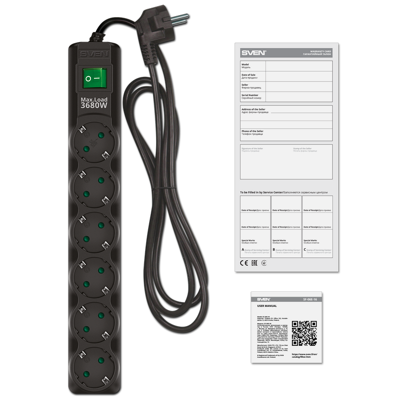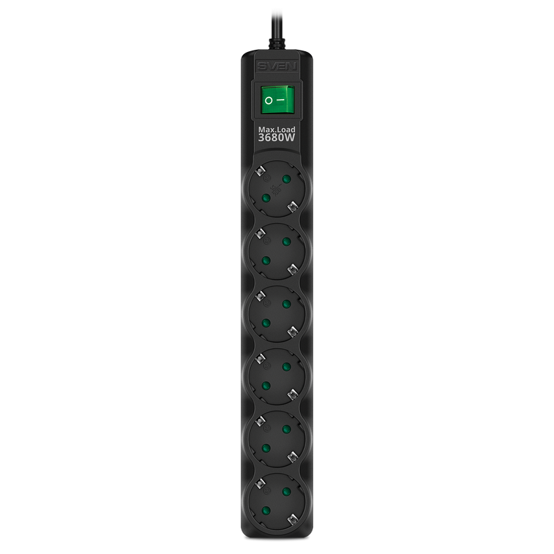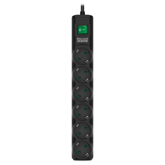 Особенности Сетевой фильтр SVEN SF-06E-16, 6 Розеток, 3м, Черный