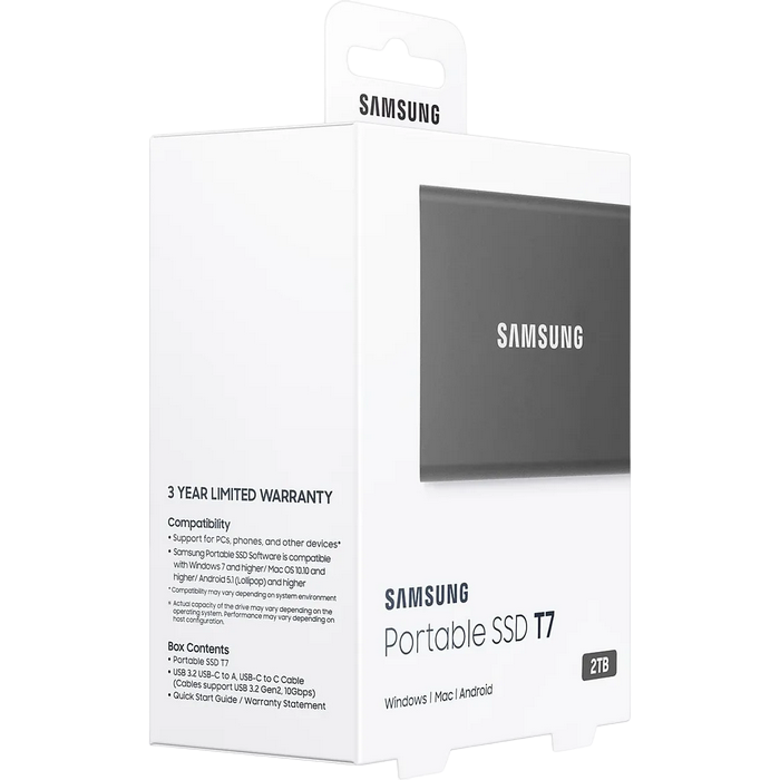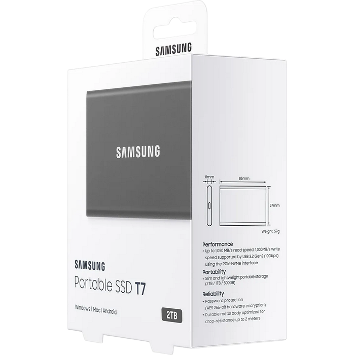 Особенности Внешний портативный SSD-накопитель Samsung Portable SSD T7, 2 TB, Grey (MU-PC2T0T/WW)