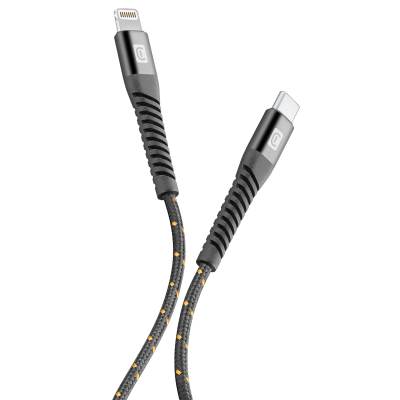 Особенности Кабель для зарядки и передачи данных Cellularline Strong Cable, Lightning/USB Type-C, 2м, Чёрный