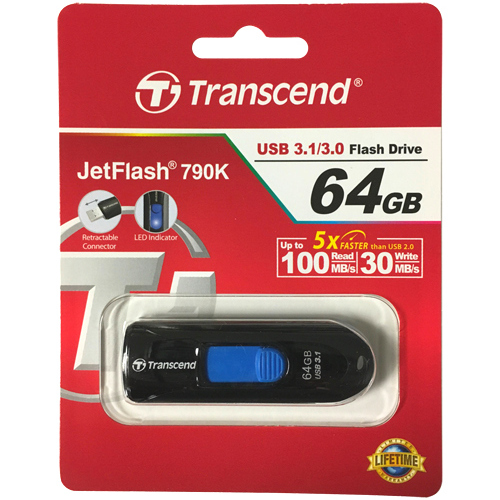 Особенности USB Flash накопитель Transcend JetFlash 790, 64Гб, Чёрный