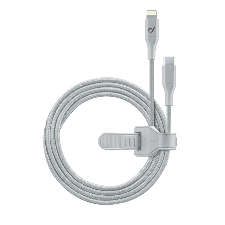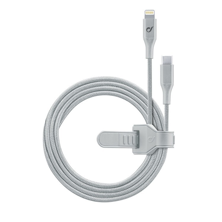 Особенности Кабель для зарядки и передачи данных Cellularline Satellite MFI, Lightning/USB Type-C, 1,2м, Серебристый