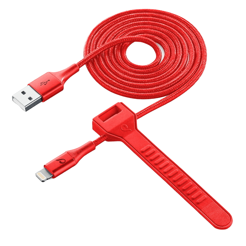 Особенности Кабель для зарядки и синхронизации Cellularline Satellite MFI, USB Type-A/Lightning, 1м, Красный