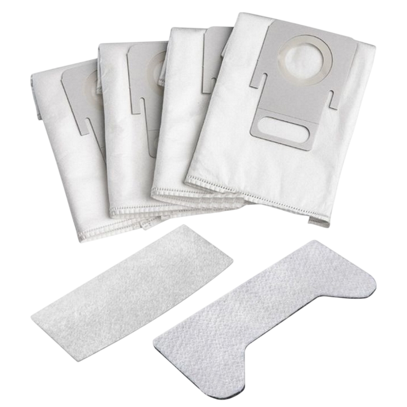 Состав комплекта: 4 мешка из НЕРА, угольный фильтр, микрофильтр