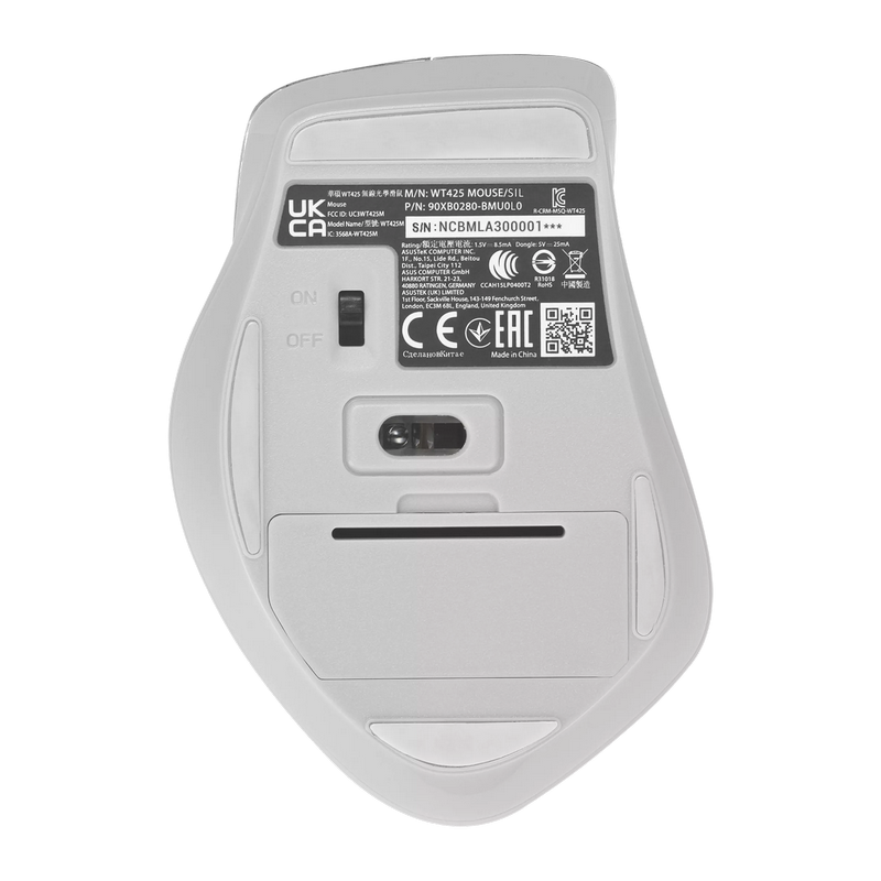 Особенности Wireless Mouse Asus WT425, 1000-1600 dpi, 6 buttons, Ergonomic, 82g, Silent, 1xAA, 2.4Ghz, Silver